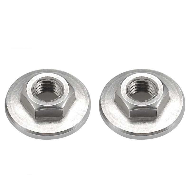 اس نٹ کا سب سے الگ حصہ بلٹ ان فلانج ہے-یہ ایک وسیع ، فلیٹ رنگ ہے جو مرکزی نٹ کے جسم سے منسلک ہے۔ فلانج بلٹ ان واشر کی طرح کام کرتا ہے ، لہذا آپ کو الگ الگ شامل کرنے کی ضرورت نہیں ہے۔ مرکزی جسم بیلناکار ہے ، جس میں معیاری داخلی دھاگے ہیں جو میٹرک یا امپیریل بولٹ سے ملتے ہیں۔