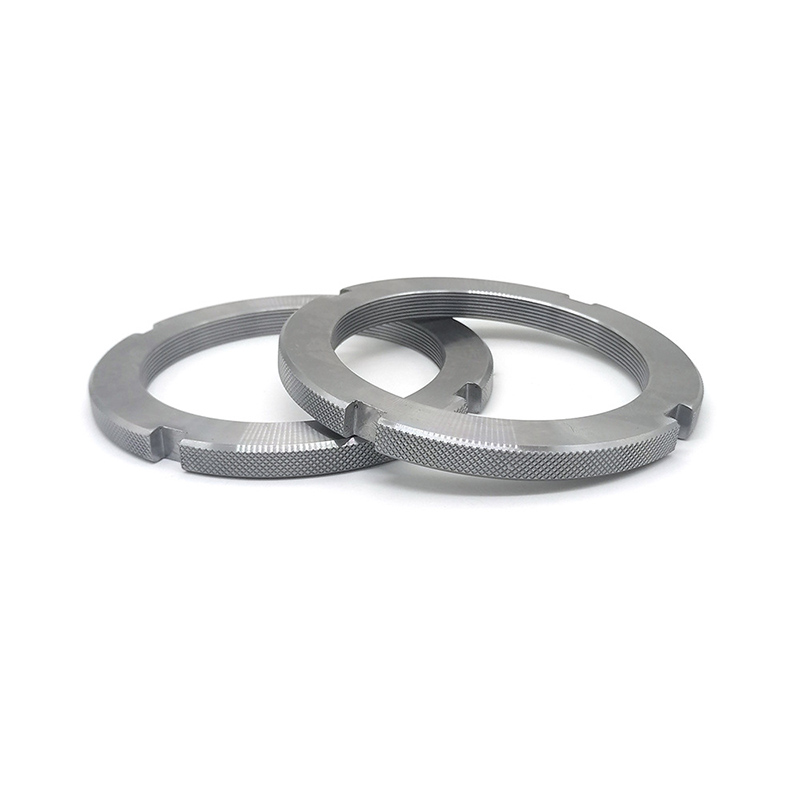 مکمل طور پر تھریڈڈ سلاٹڈ گول گری دار میوے - ان کی تعریف DIN 546 جیسے معیار کے مطابق کی جاتی ہے اور بنیادی طور پر ایک محفوظ فاسٹنگ کنکشن حاصل کرنے کے لئے استعمال ہوتے ہیں اور کمپنوں کا مقابلہ کرسکتے ہیں۔ ان گری دار میوے کی بنیادی خصوصیت نٹ کے ایک سرے پر کاٹنے والے سلاٹوں میں ہے۔ ان کو استعمال کرنے کا طریقہ یہ ہے: سب سے پہلے ، نٹ کو پہلے سے ڈرلڈ بولٹ یا جڑنا پر سکرو کریں اور اسے مطلوبہ پوزیشن پر سخت کریں۔ سخت کرنے کے بعد ، بولٹ شافٹ پر سوراخ کے ساتھ سلاٹ سیدھ کریں۔ آخر میں ، منسلک سلاٹ اور بولٹ ہول کے ذریعے کھلی پن (لاکنگ واشر) یا سیفٹی لائن داخل کریں ، اور پھر محفوظ فٹ کو یقینی بنانے کے لئے پن کے سروں کو موڑیں۔ اس طرح ، کمپن کی موجودگی میں ، نٹ ڈھیل نہیں کرے گا۔