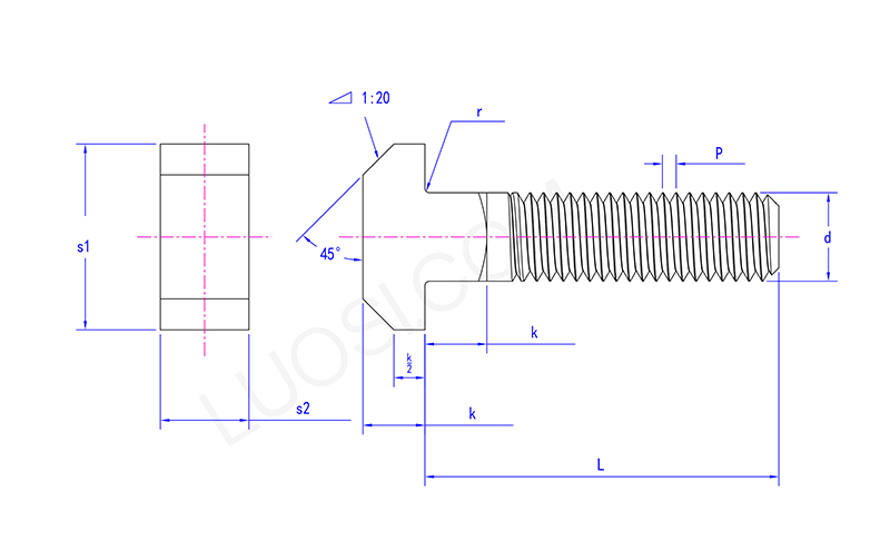 مربع گردن ٹی بولٹ انتہائی قابل شناخت ہیں۔ پہلو سے دیکھا جاتا ہے ، وہ حصہ جہاں سر سکرو سے جڑتا ہے ، یعنی گردن ، ایک باقاعدہ مربع ، صاف اور مربع ہے۔ مزید یہ کہ ، گردن کی لمبائی عام طور پر زیادہ لمبی نہیں ہوتی ہے اور عام طور پر اسی موٹائی کے بارے میں ہوتا ہے جتنا اس کے جزو سے منسلک ہوتا ہے۔ سکرو حصہ ایک بیلناکار دھات کی چھڑی ہے ، اور اس کی موٹائی بولٹ کی وضاحتوں کے مطابق مختلف ہوتی ہے۔ سکرو کی سطح دھاگوں کے ساتھ کندہ ہوتی ہے ، جو عام بولٹ دھاگوں کی طرح ہوتی ہے جو ہم دیکھتے ہیں ، ایک سرپل شکل میں ، اور نٹ کو سخت کرنے کے لئے استعمال ہوتے ہیں۔